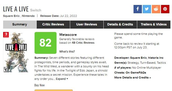 ライブアライブ、メタスコア82 2022/7/23 Y速報 " " 1: 2022/07/22(金) 10:16:00.87 ID:QvtPRt4t0 IGN90 参考 オクトパストラベラー83 トライアングルストラテジー83 続きを読む Source: Y速報