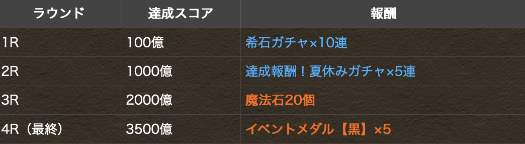 また、全体スコア報酬で「魔法石20個」や「イベントメダル【黒】×5」などがゲットできる!