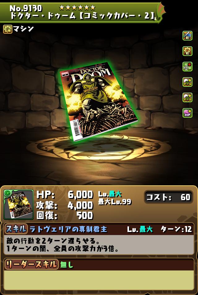 また、「悪のカリスマ ドクター・ドゥーム」が出現すると、「ドクター・ドゥーム【コミックカバー・2】」を必ずドロップするようになるぞ!