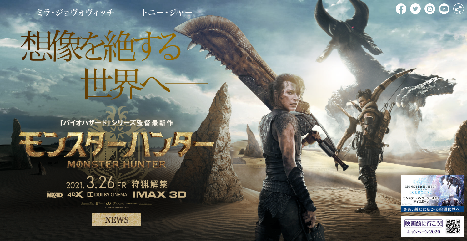 実写映画『モンスターハンター』日本公開日が2021年3月26日に決定!ポスタービジュアルも解禁、ディアブロス亜種の姿がお披露目! 2020/10/29 PS5速報! " " ハリウッド映画『モンスターハンター』日本での公開日が2021年3月26日に決定! 続きを読む Source: PS4速報!