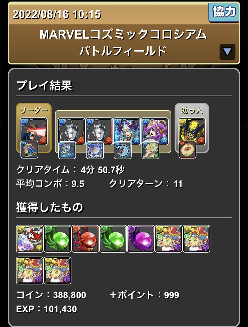 【パズドラ】マーベルコロシアム「マルチ」サイクロップス×ウルヴァリンPT 2022/8/17 オーガch.-パズドラ攻略まとめ速報 " " 481: おーがちゃんねる 2022/08/16(火) 10:35:03.91 自演マルチでサブ側の編成難易度が結構低いサイクロップスウルヴァリン考えたから良かったら参考に母体は全部今取れる大体4分30秒~5分くらい 続きを読む Source: オーガch.-パズドラ攻略まとめ速報