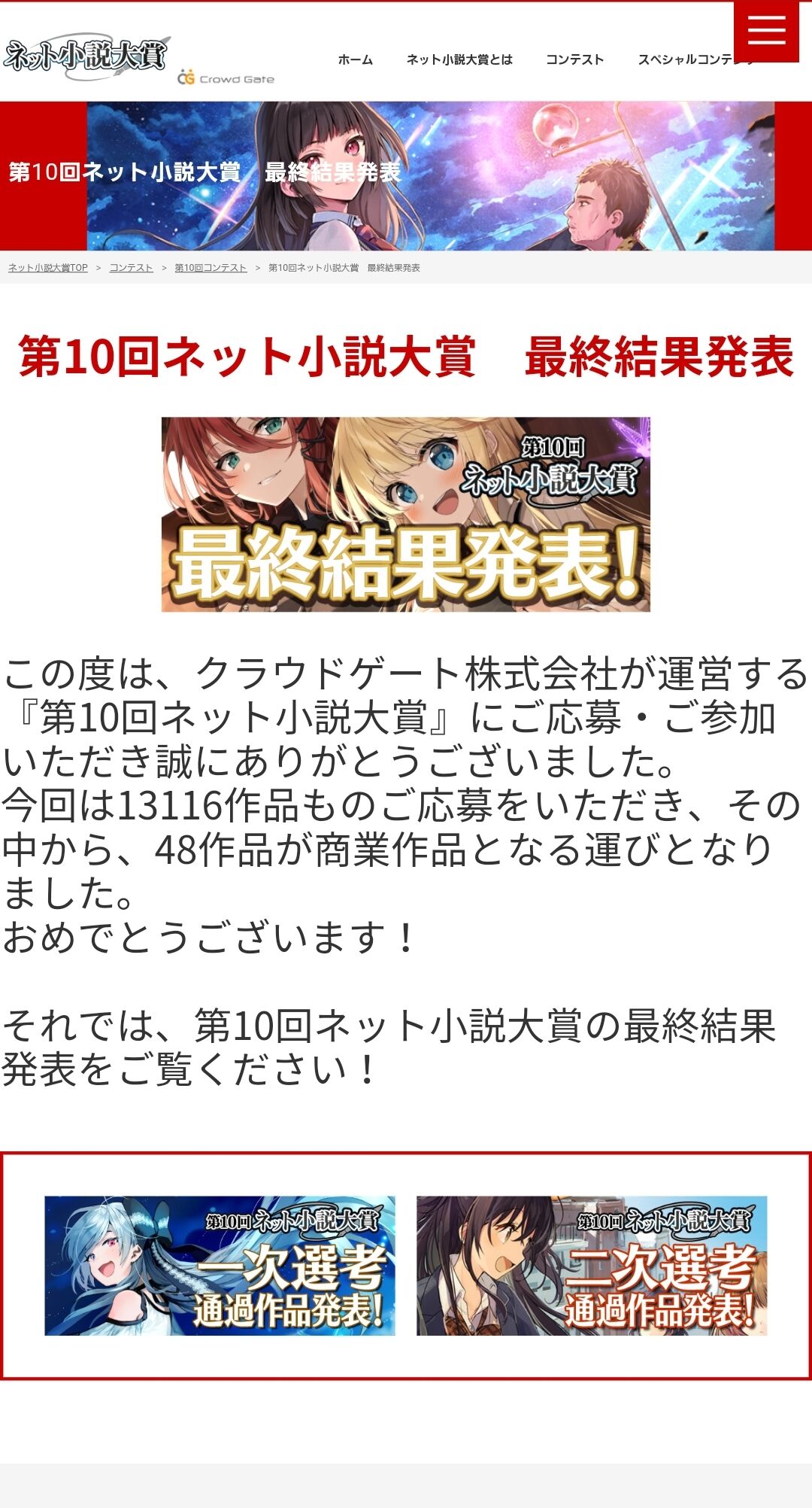 それでは、第10回ネット小説大賞の最終結果発表をご覧ください!