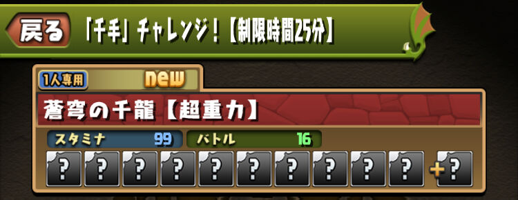 このダンジョンは、テクニカルダンジョンの「未知の新星【超重力/ノーコン】/蒼穹の千龍」フロアがタイムアタック形式となったダンジョンだ!