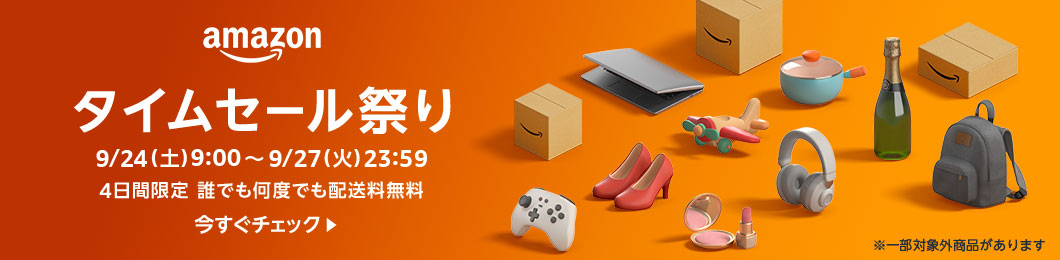 Amazonは、87時間限定の「タイムセール」を9/27日(月)23時59分まで開催する。