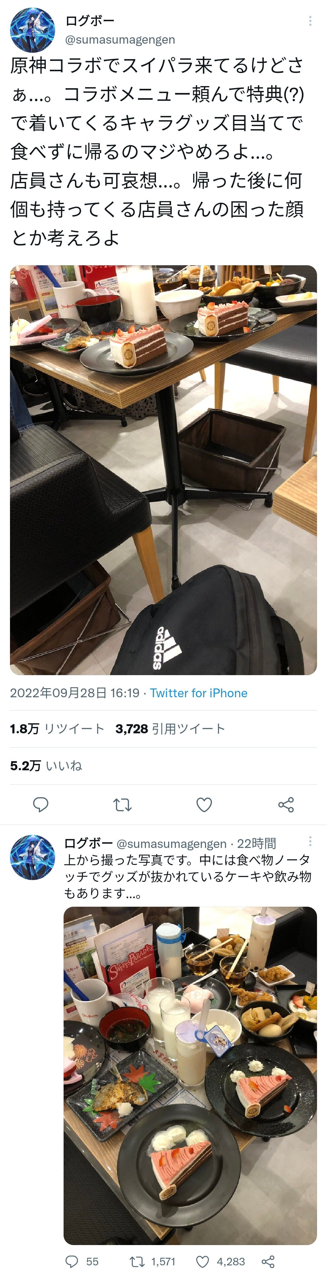 【悲報】原神ファン、コラボカフェでグッズ目当てで注文した料理を食べ残ししまくって炎上 2022/9/30 Y速報 " " 1: 2022/09/29(木) 16:17:17.98 ID:wo3zRZSh0 続きを読む Source: Y速報
