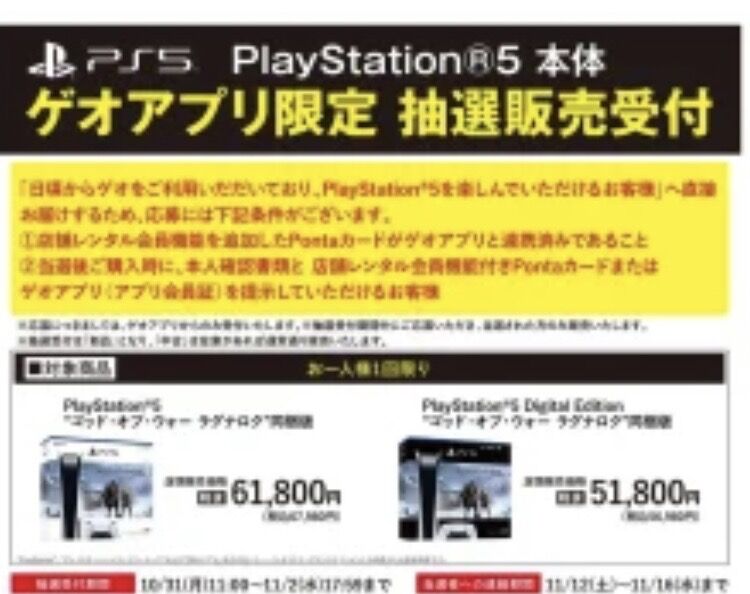 【悲報】GEOのPS5抽選、抱き合わせのみになる・・・ 2022/11/2 Y速報 " " 1: 2022/10/31(月) 21:02:34.65 ID:SfbiTSbFdHLWN 開き直ったね 続きを読む Source: Y速報
