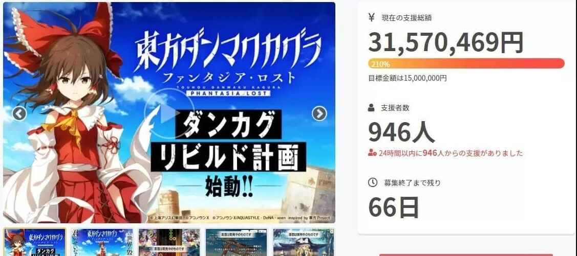 東方Project公認リズムゲーム『東方ダンマクカグラ ファンタジア・ロスト』Nintendo Switch版の制作が決定。クラウドファンディング目標額の1500万円をなんと開始30分で達成