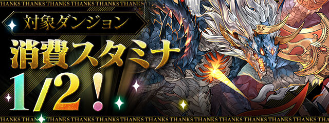 期間中、対象の降臨ダンジョンがずっと出現&消費スタミナ1/2!