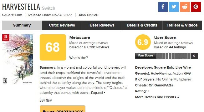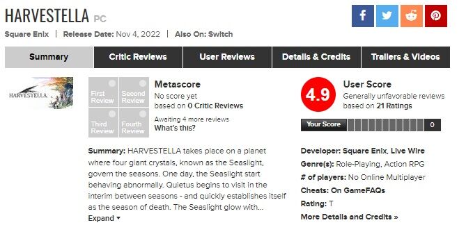 【ハーヴェステラ】 メタスコア68点、ユーザースコア6.9 (PC版4.9) 2022/11/9 Y速報 " " 1: 2022/11/09(水) 08:51:04.03 ID:YCNDQpYi0 https://www.metacritic.com/game/switch/harvestella 続きを読む Source: Y速報