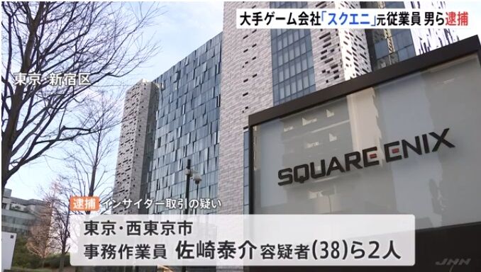 速報です。東京地検特捜部は先ほど、株式のインサイダー取引をした金融商品取引法違反の疑いで、大手ゲーム会社スクウェア・エニックスの従業員として働いていた男ら2人を逮捕しました。