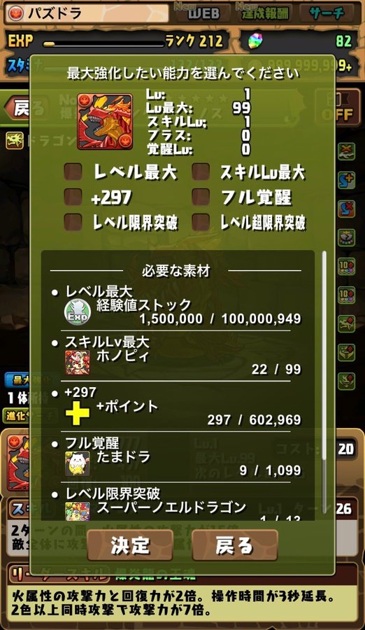 モンスター詳細画面から、レベル最大、スキルレベル最大、+297、フル覚醒、レベル限界突破&超限界突破を一気にまとめてやれる機能を開発中です。