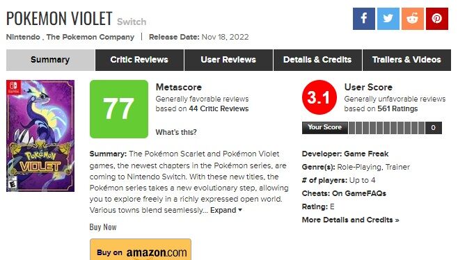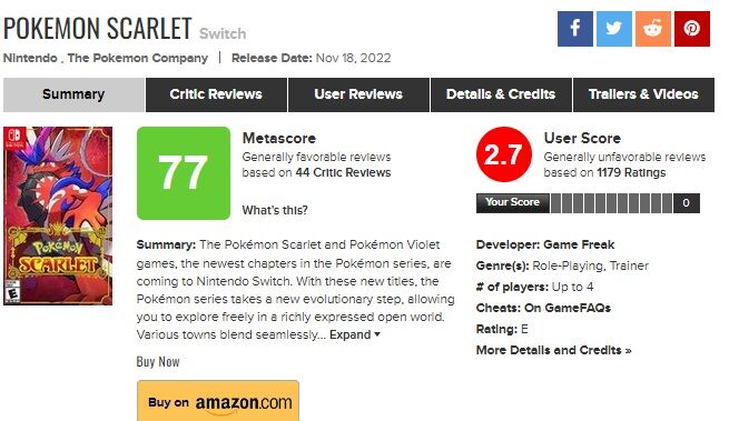【悲報】ポケモンSV、ユーザースコア2.7点 2022/11/21 Y速報 " " 1: 2022/11/20(日) 10:58:51.43 ID:7qrjQH7O0HAPPY https://www.metacritic.com/game/switch/pokemon-violet/user-reviews うわあああああああ ああああああああああああ 続きを読む Source: Y速報