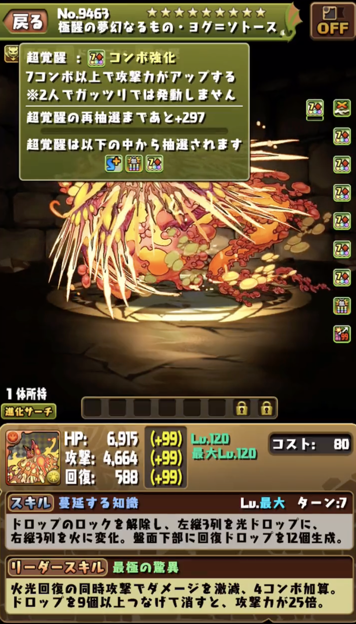 先ほどご紹介した「極醒の夢幻なるもの・ヨグ=ソトース」のスキルを使った場合、このようなドロップ配置になります。#パズドラ pic.twitter.com/q1HMZvy6w3
