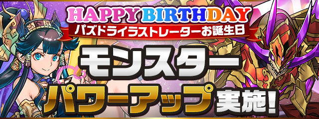 パズドライラストレーターのお誕生日を記念したモンスターのパワーアップを実施!