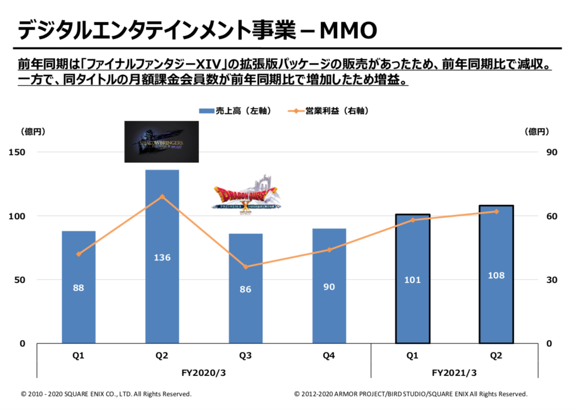 前年同期に「ファイナルファンタジーXIV」拡張版ディスクの発売があったため減収となったものの