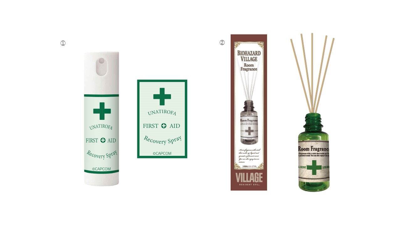 発表されたのは,シリーズでお馴染みの回復アイテムをイメージした「CAPCOM STORE バイオハザード 救急スプレーボトル」と,シリーズ最新作「バイオハザード ヴィレッジ」で登場したアイテムをイメージした「CAPCOM STORE バイオハザード ヴィレッジ 回復薬ルームフレグランス」の2種類だ。