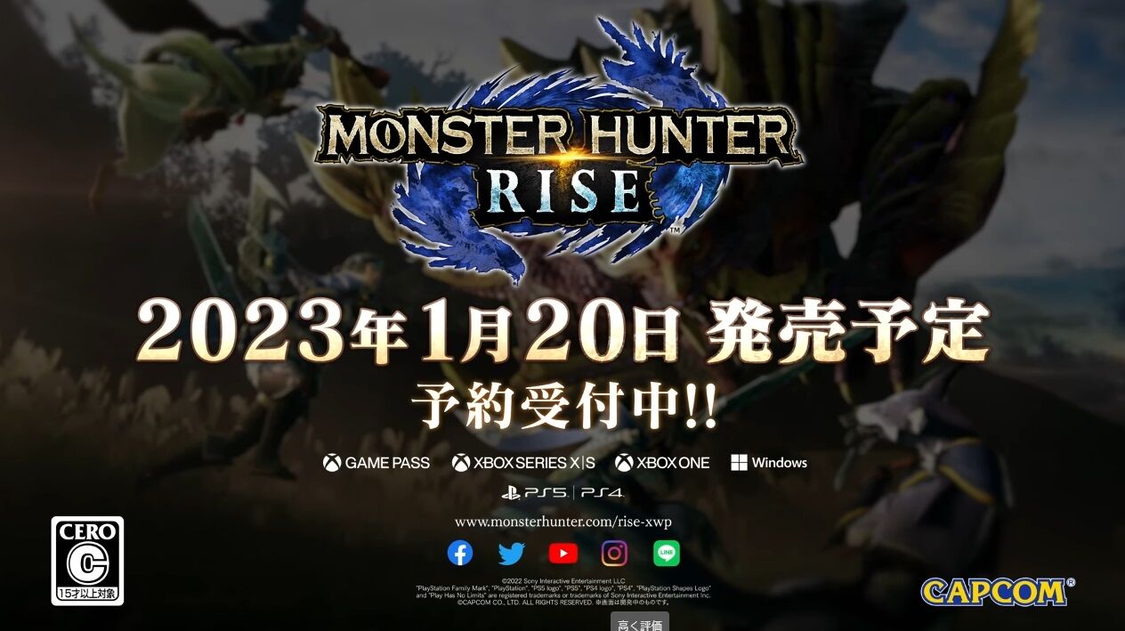 『モンスターハンターライズ』(ダウンロード版)がXbox Series X|S、Xbox One、Windows、PlayStation5、PlayStation4で2023年1月20日(金)発売決定!… https://t.co/ZjL8vfhfeq