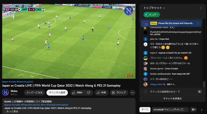 YoutubeLiveで日本vsクロアチアのゲームのライブ配信を騙されて見てしまう