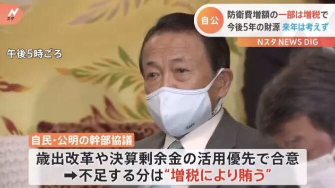 きょうの協議では、来年度から5年の間に、まずは歳出改革や剰余金による活用を優先することで合意しました。それでも、不足する分については、増税を選択肢とするとしています。