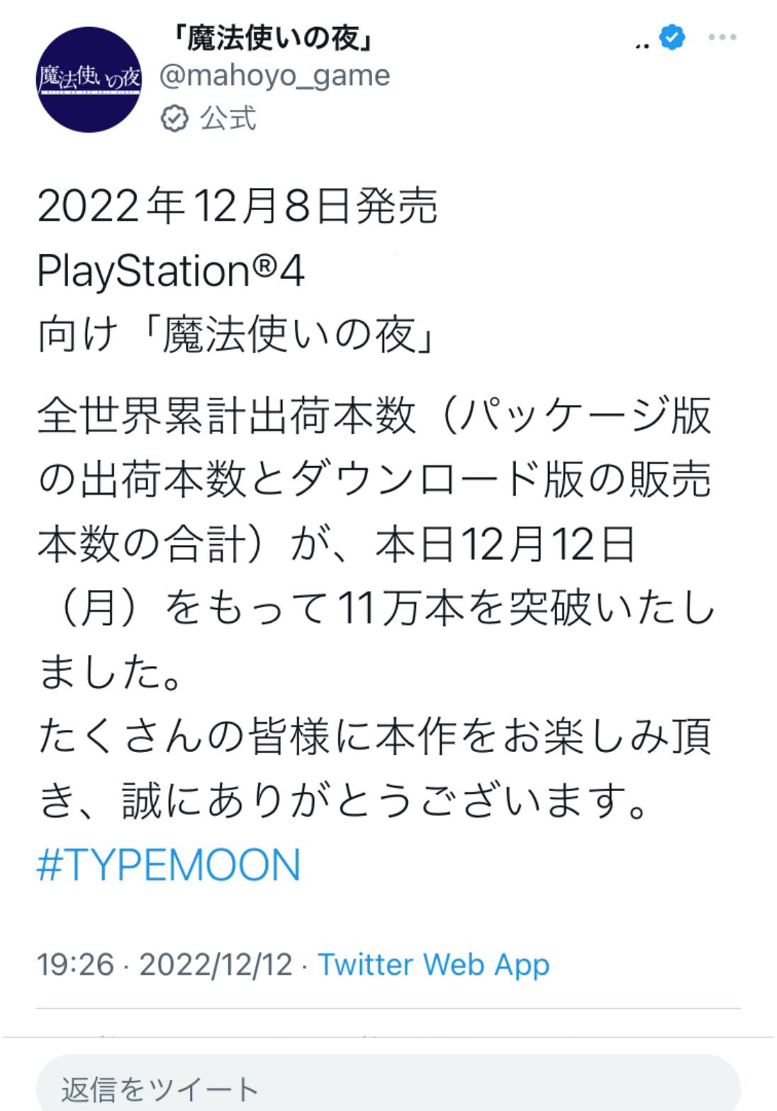 魔法使いの夜、11万本達成!! 2022/12/13 Y速報 " " 1: 2022/12/12(月) 22:03:07.01 ID:uYFUJVO00 おめでとう!!! 続きを読む Source: Y速報