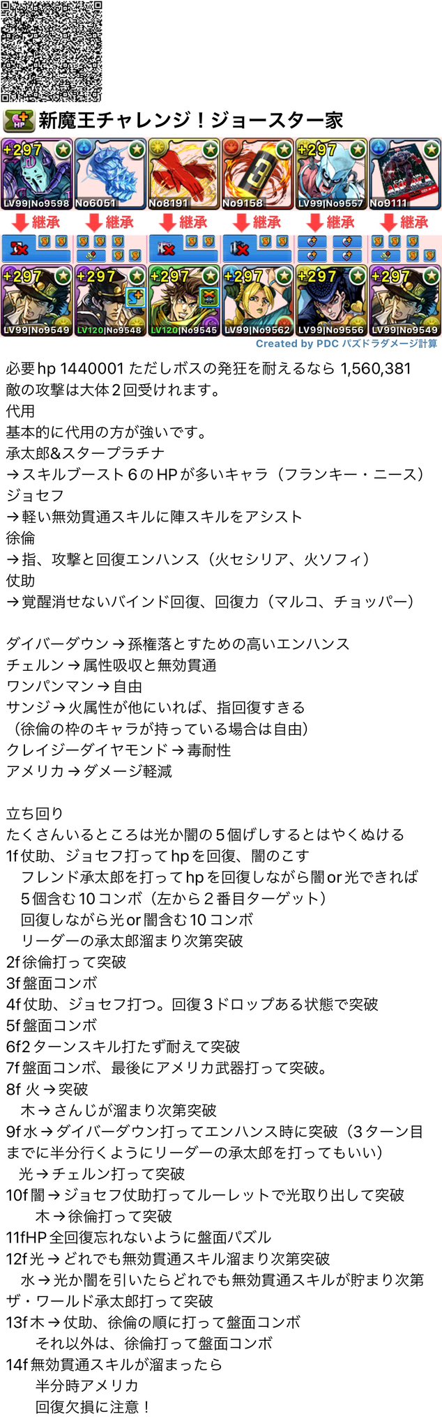 【パズドラ】ジョースター家のみ!うおおおジョジョコラボ最強!【短レス】 2023/1/2 オーガch.-パズドラ攻略まとめ速報 " " 26: おーがちゃんねる 2022/12/30(金) 14:16:37.57 うおおおジョジョコラボ最強! https://twitter.com/5chan_nel (5ch newer account) 続きを読む Source: オーガch.-パズドラ攻略まとめ速報
