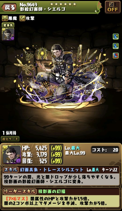 【パズドラ】リーダースキル不具合では?「影絵幻画師・シエルゴ」の性能公開に対する反応まとめ 2023/1/10 オーガch.-パズドラ攻略まとめ速報 " " 変身前 変身後 アシスト武器 続きを読む Source: オーガch.-パズドラ攻略まとめ速報