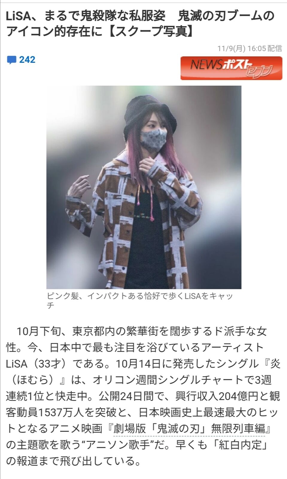 【画像】まるで鬼殺隊、アニソン歌手LiSAさんの私服wwww 2020/11/10 Y速報 " " 1: 2020/11/09(月) 18:27:54.39 ID:9UngvKT5M 続きを読む Source: Y速報