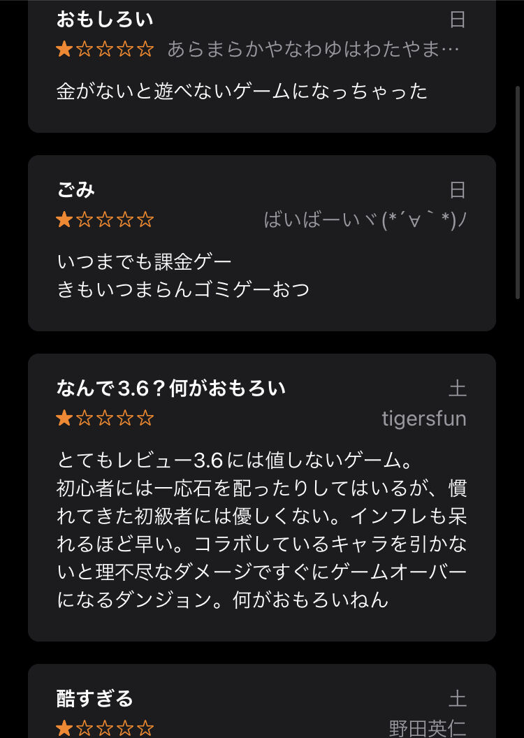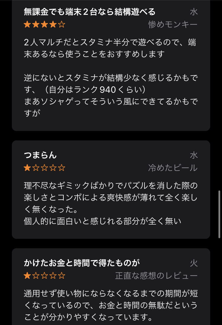【緊急事態】appのレビュー最新から見たらほとんど星1でわろたwwww【パズドラ】 2023/1/16 オーガch.-パズドラ攻略まとめ速報 " " 104: おーがちゃんねる 2023/01/16(月) 06:19:29.83 久々にappのレビュー最新から見たらほとんど星1でわろた 直近数ヶ月とかでレビュー取ったらオワドラであること明るみに出るんじゃない? 続きを読む Source: オーガch.-パズドラ攻略まとめ速報