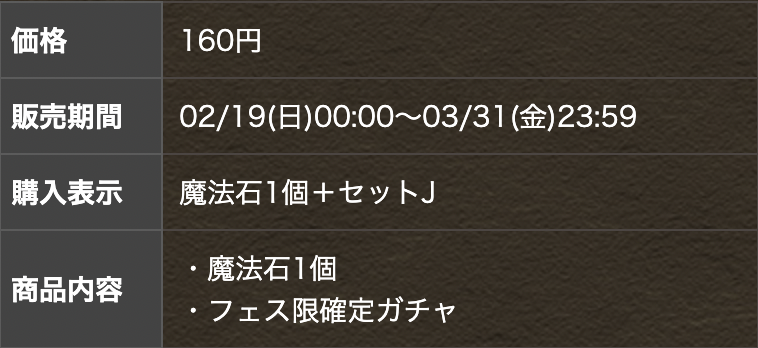 「魔法石1個+フェス限確定ガチャ」を購入すると、「魔法石1個」と「フェス限確定ガチャ」が入手できるぞ!