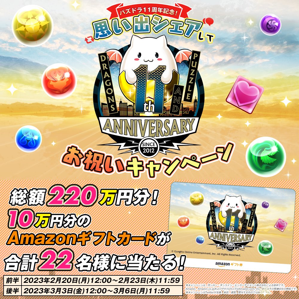 本アカウントをフォローして、ハッシュタグ「#パズドラ11周年」と「#一番好きなモンスター
