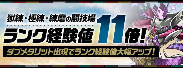 追加2弾 獄練・極練・練磨の闘技場 ランク経験値11倍! ダブメタリット出現でランク経験値が大幅アップ!