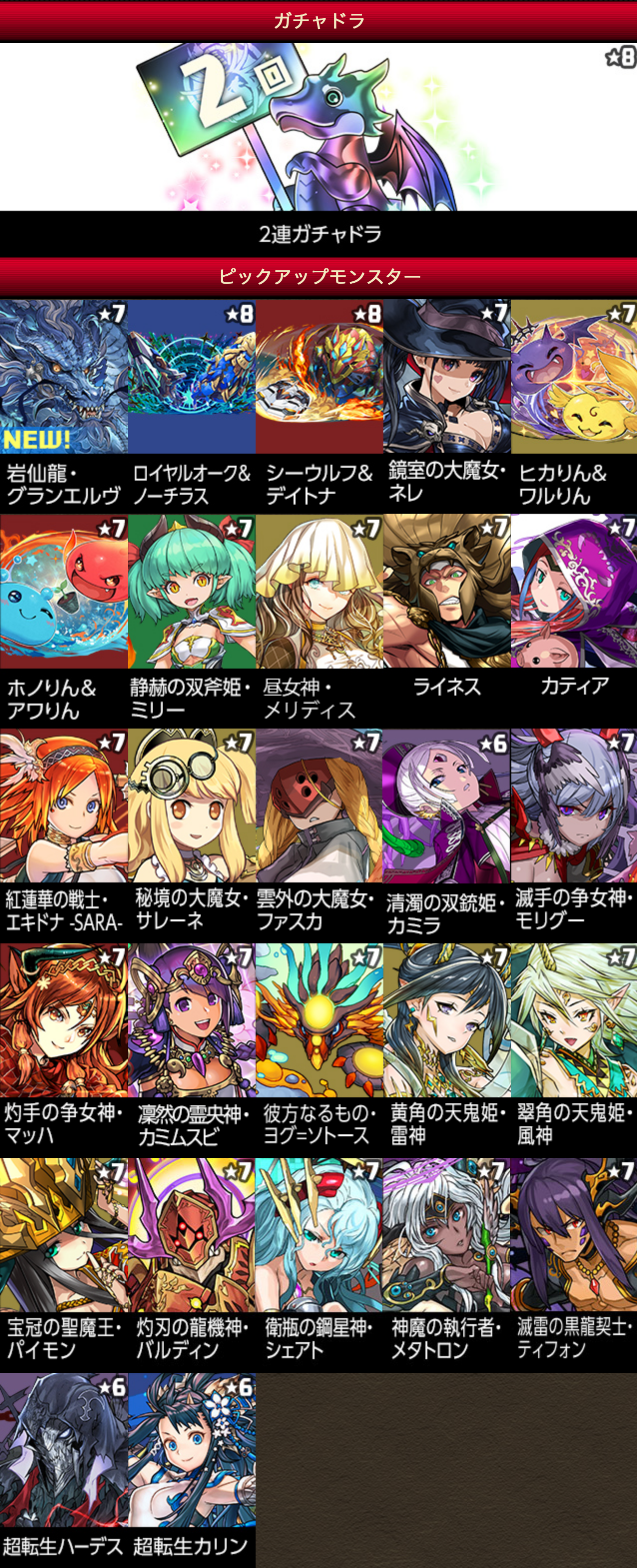そして新フェス限定モンスターの「岩仙龍・グランエルヴ」や、03/30(木)にパワーアップする「超転生ハーデス」、「超転生カリン」、新たな進化形態が追加される「鏡室の大魔女・ネレ」を今回はそれぞれ3%でピックアップ!