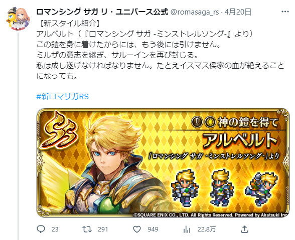 私は成し遂げなければなりません。たとえイスマス侯家の血が絶えることになっても。#新ロマサガRS pic.twitter.com/KcOGD5rxJq— ロマンシング サガ リ・ユニバース公式 (@romasaga_rs) April 20, 2023