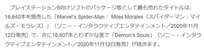 【悲報】PS5初週売上11万本、デモンズソウル18000本というとんでもない結果になる 2020/11/18 ダークソウルまとめ速報 " " 822: ID:ZdaKY7kq0 日本のPS5の売上11万ちょいらしい 全員がデモンズ買ってるとしてもマルチゲーのスタートとしてはかなり少ない しかもこれマルチ前にソロありきのゲームだし 続きを読む Source: ダークソウルまとめ速報