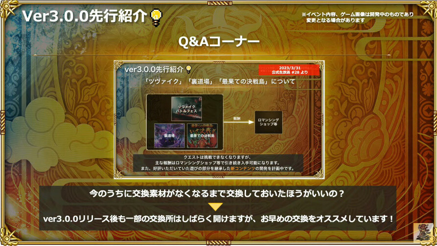 【生放送】アプデ3.0情報!ツヴァイク、裏道場、最果ての決戦島の「アイテム交換」は早めに!その内に無くなる模様【ロマサガRS】 2023/4/28 ロマサガRS攻略まとめ " " 733 名前ボストン速報:2023/04/28(金) 20:24:44.37 ID:Q5I 補給なくすのええやん! 続きを読む Source: ロマサガRS攻略まとめ