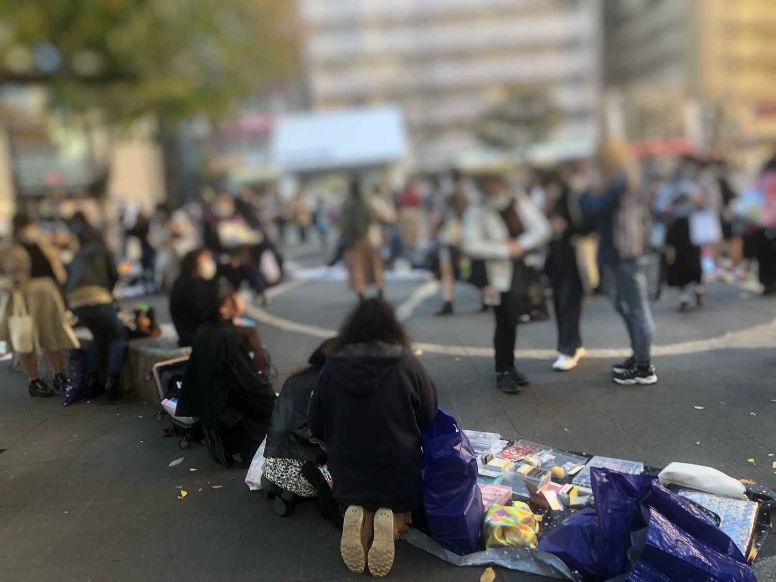 中にはレジャーシートを持参して公園に座りトレーディングを行っている人など端から見たらフリーマーケット状態。
