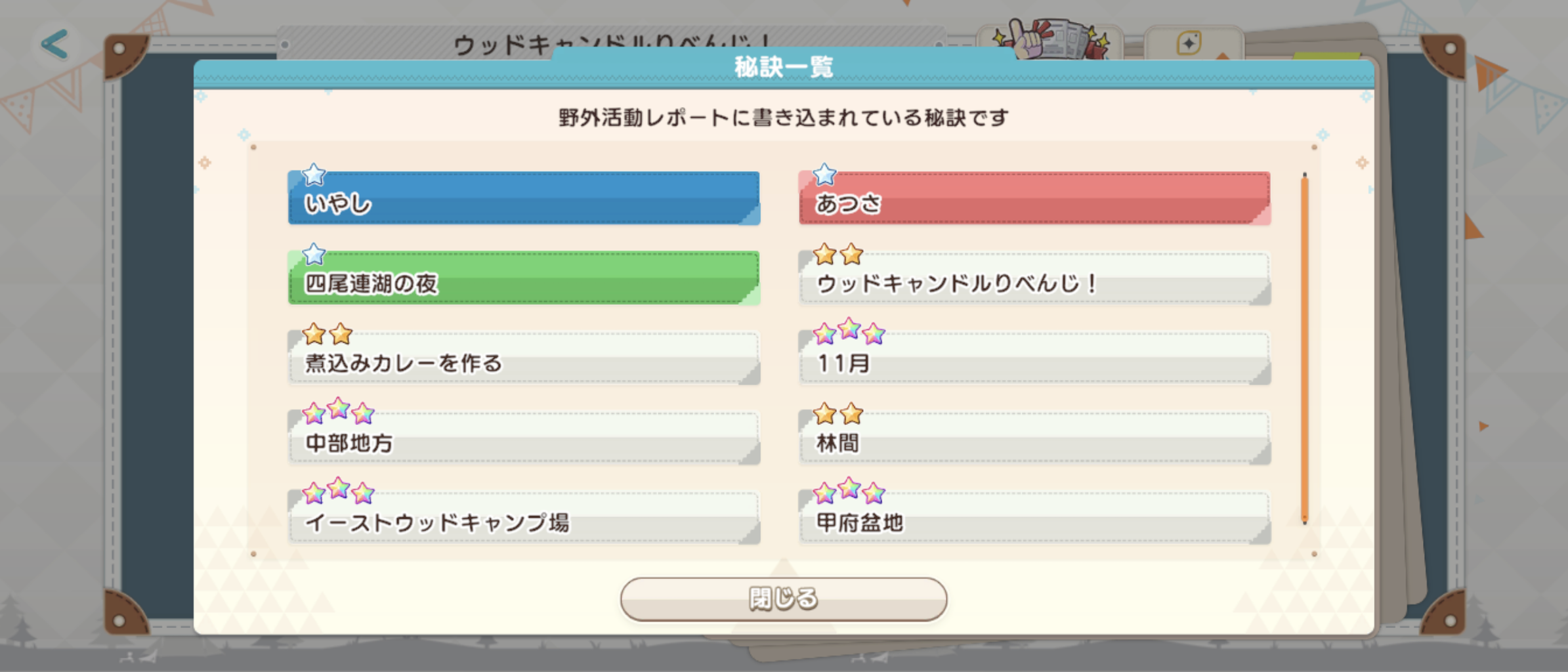 数T行動→キャンプミッション(成功失敗あり。スキルで成功率アップ)