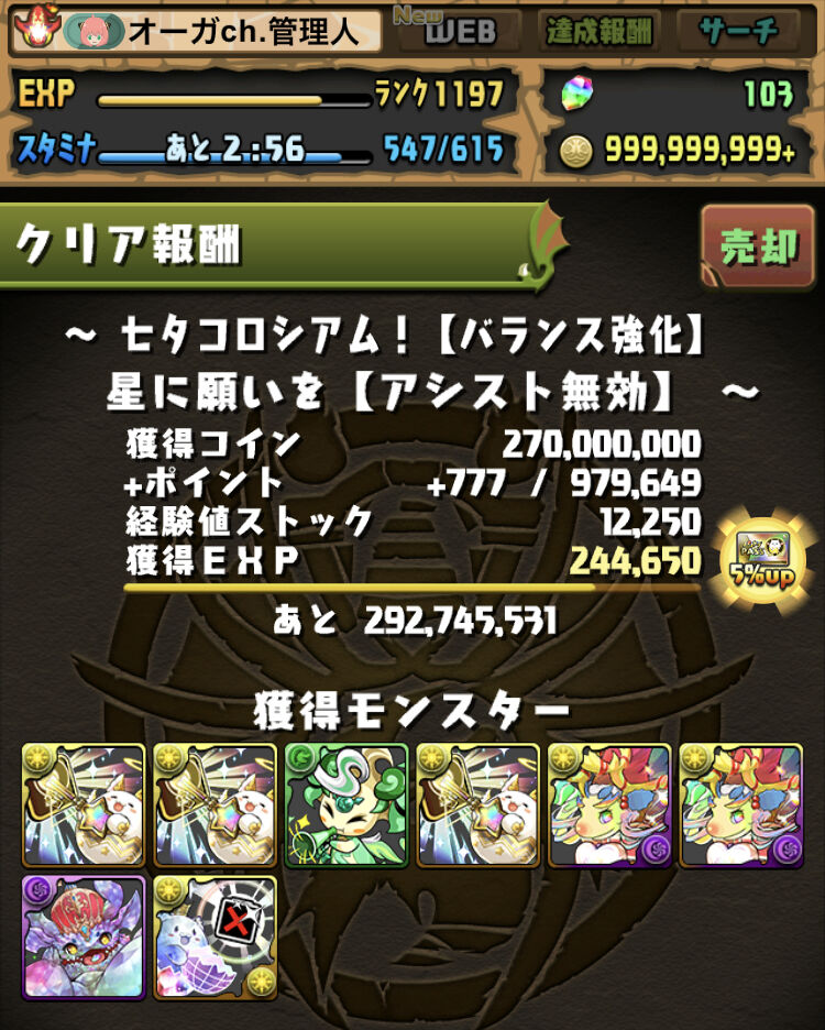 潜在たまドラ☆アシスト無効回復 - コイン(7000万~7億ランダム)