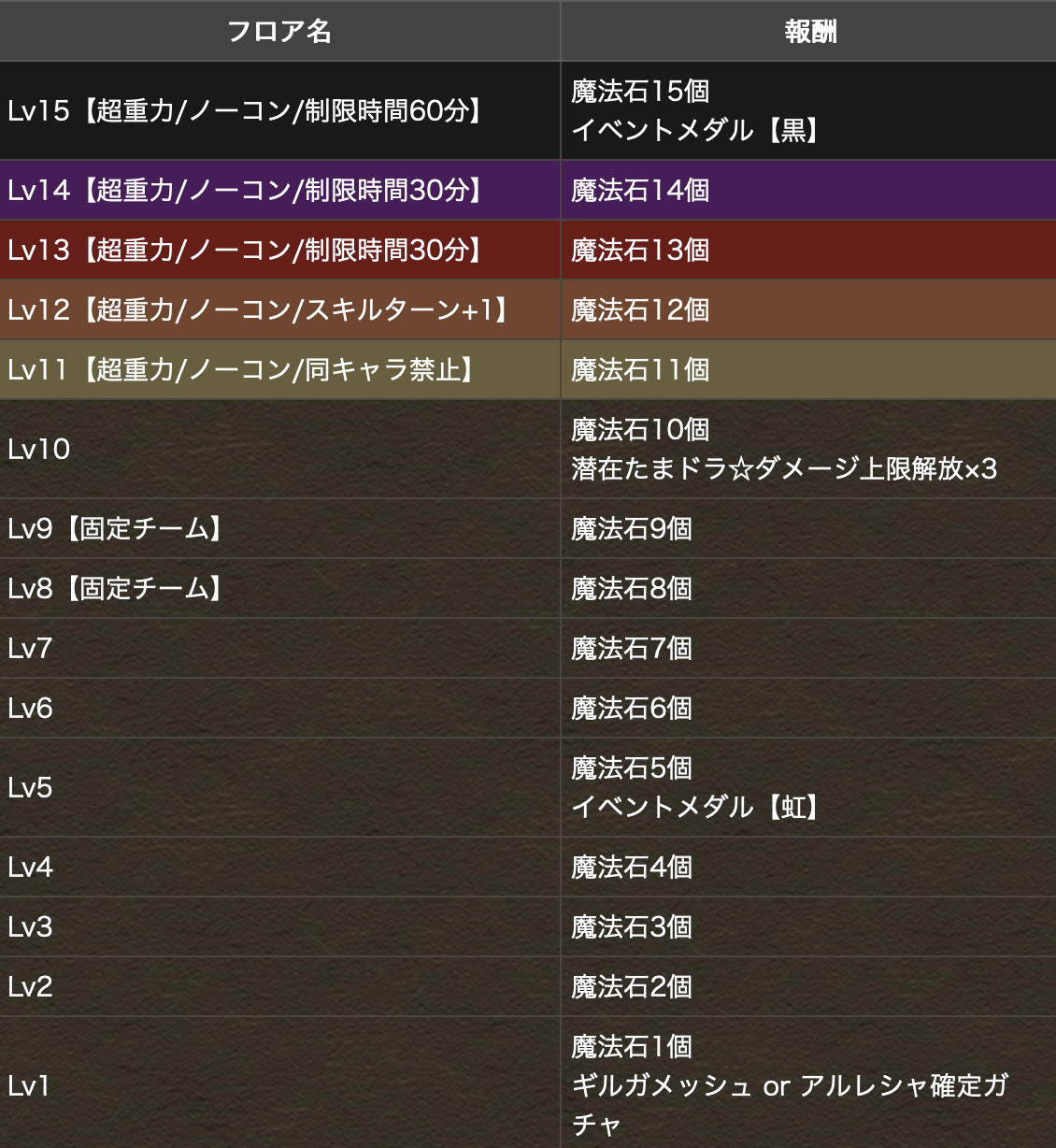 また、今回よりLv5~Lv15のフロアが消費スタミナ50に統一されるぞ!
