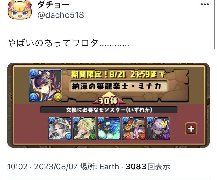 【パズドラ】夏休みミナカ高級券30体交換は馬鹿げてるけど別にいい、最悪なのは… 2023/8/7 オーガch.-パズドラ攻略まとめ速報 " " 524: おーがちゃんねる 2023/08/07(月) 10:12:13.41 アドバイス砲くるか!? 続きを読む Source: オーガch.-パズドラ攻略まとめ速報