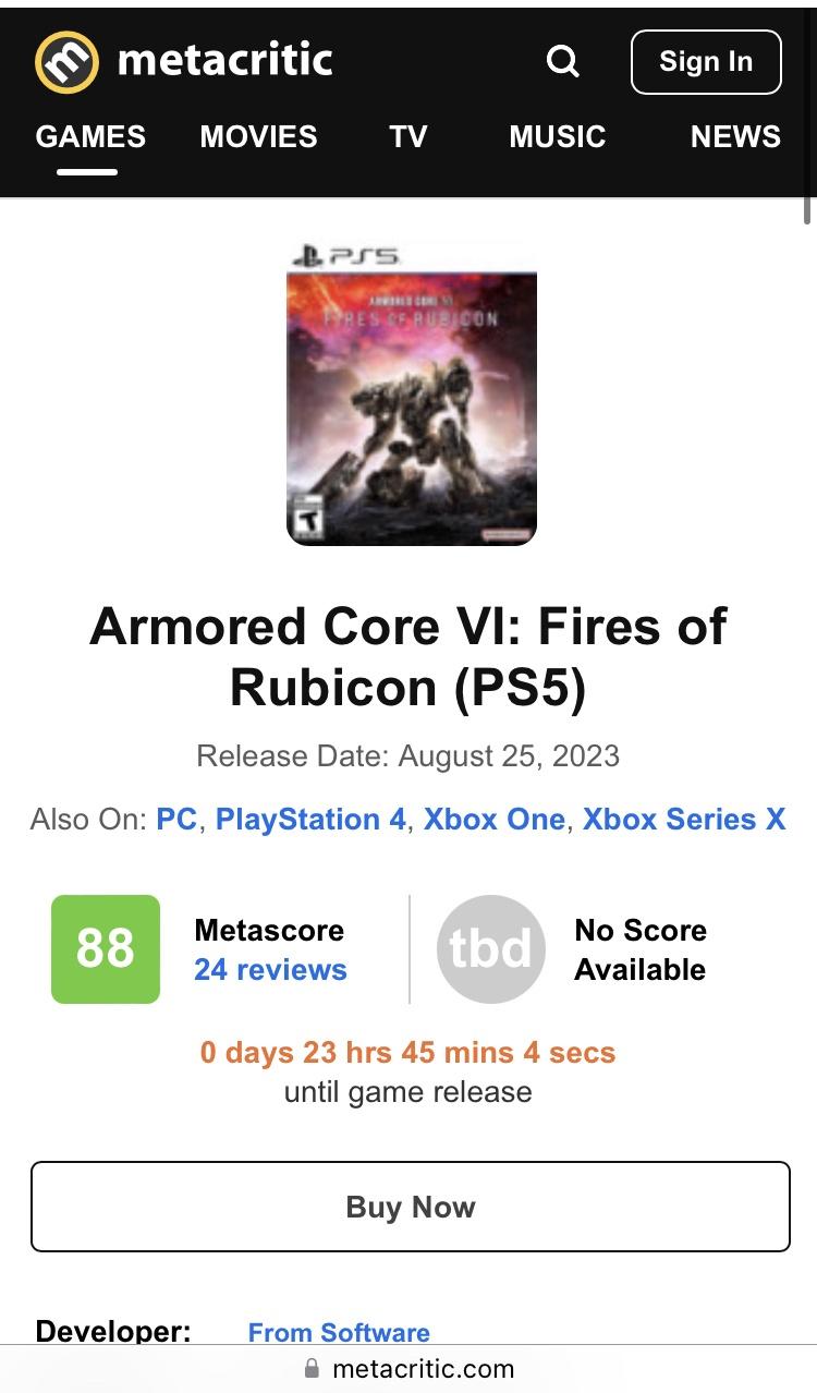 アーマードコア6、メタスコア88wwwwwwwwwwwwwww