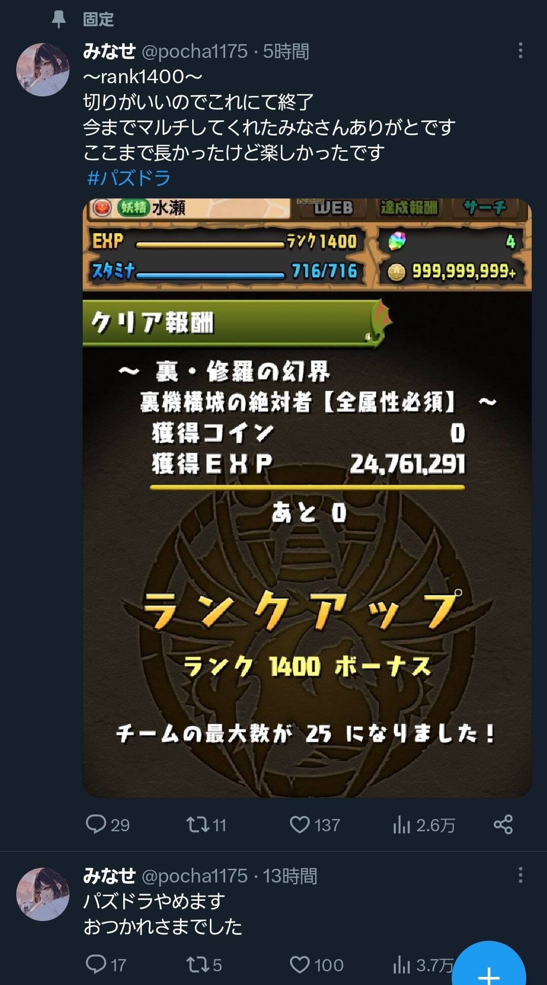 【パズドラ】コラボリーダーが輝いたのってどいつが最後や? 2023/9/14 オーガch.-パズドラ攻略まとめ速報 " " 668: おーがちゃんねる 2023/09/13(水) 15:02:49.35 また1人解脱者が生まれました 続きを読む Source: オーガch.-パズドラ攻略まとめ速報