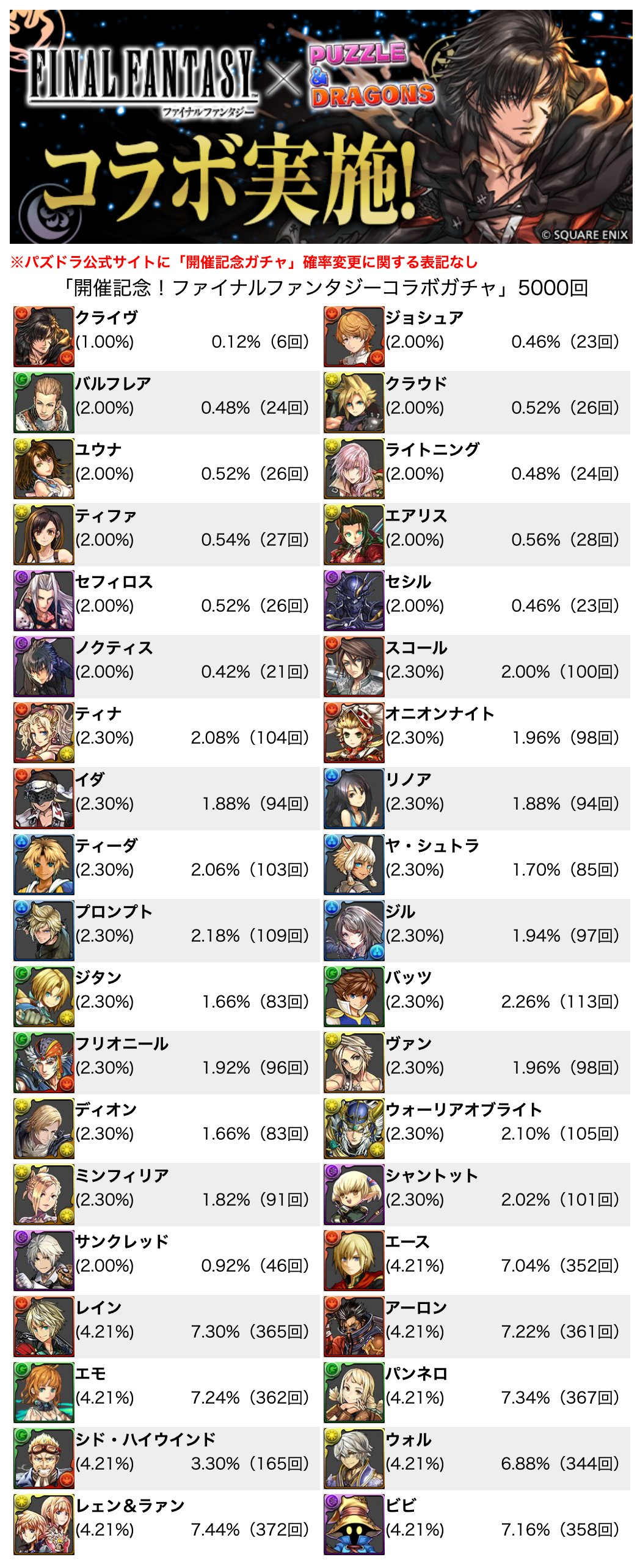 「開催記念!ファイナルファンタジーコラボガチャ」5000回