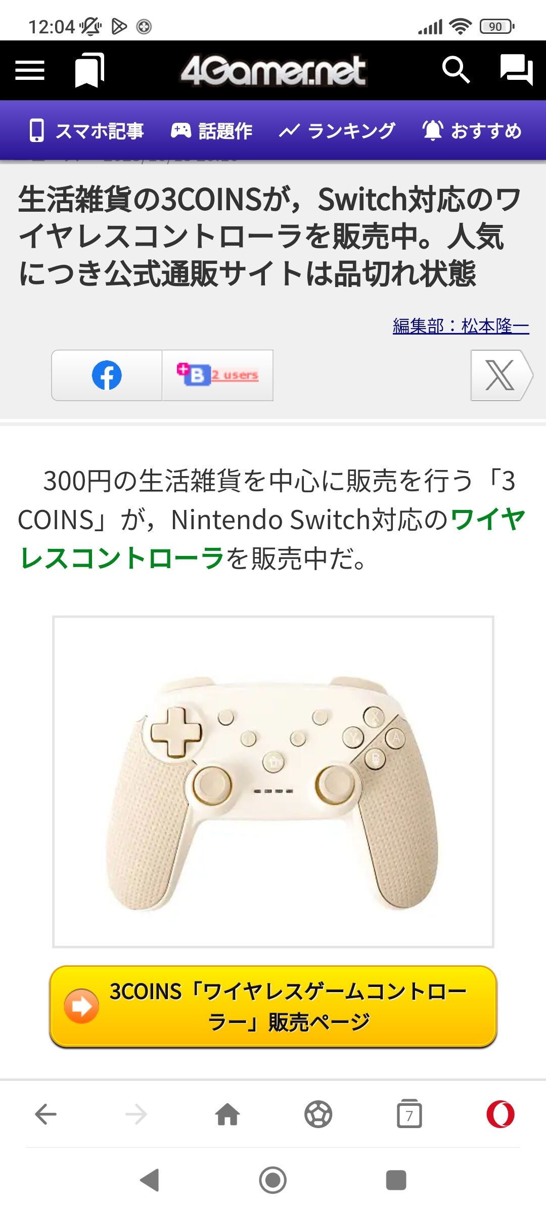 【画像】3COINSのSwitch対応コントローラー、爆売れ!! 2023/10/20 Y速報 " " 1: 2023/10/16(月) 12:07:13.16 ID:OxqMJLLN0 売り切れ続出してるらしい ちなメルカリ… 続きを読む Source: Y速報