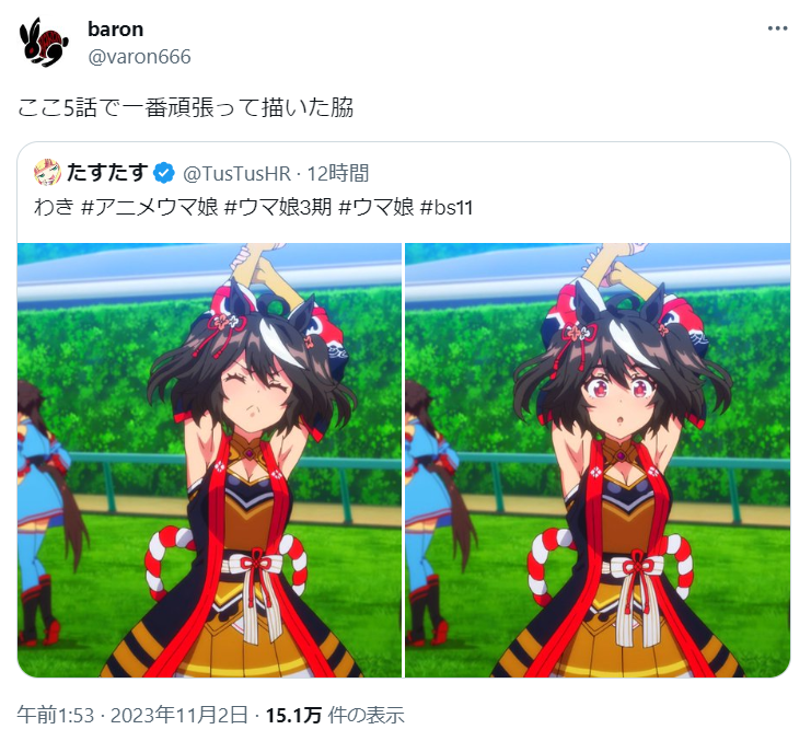 【ウマ娘】ここ5話で一番頑張って描いた脇 2023/11/3 ドラクエ10攻略まとめ 〜超DQ10速報〜 " " 0 名無しさん No.0111556789 作監の人こだわり凄くない? 1 名無しさん No.0111557889 色んな人に見られるから手抜きはできないんだ決して性癖ではないんだ 2 名無しさん No.0111556354 欺瞞! 3 名無しさん No.0111550492 ウマ界隈に腋フェチ集まってきてない? 続きを読む Source: ドラクエ10攻略まとめ 〜超DQ10速報〜