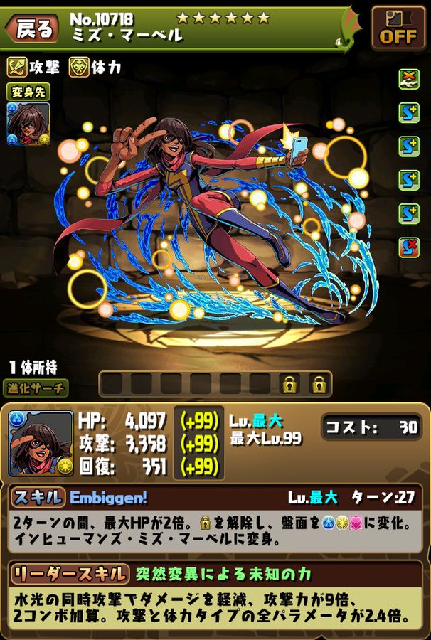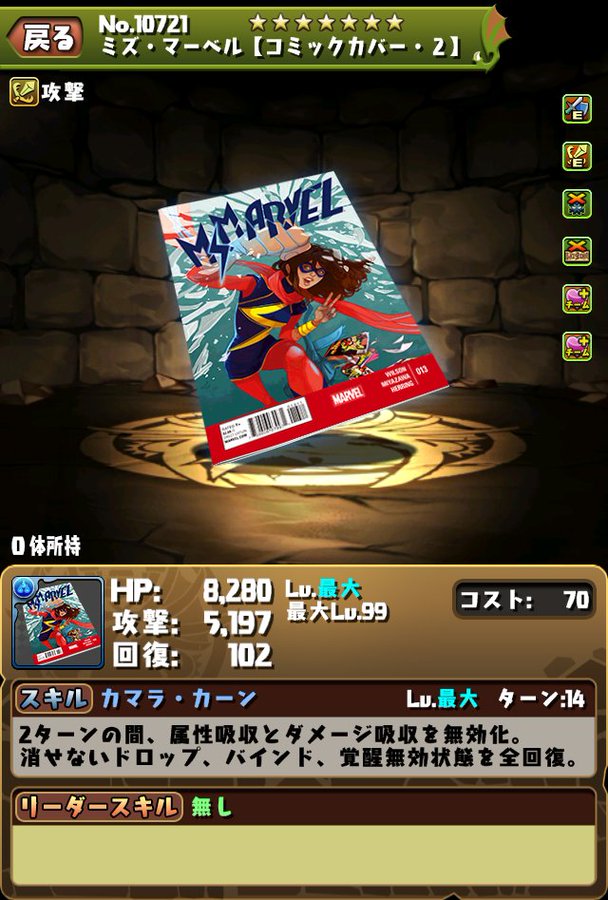 「ミズ・マーベル」です!※本内容は開発中のため、変更する可能性もございます。#マーベル #パズドラ pic.twitter.com/APz3INjzOz