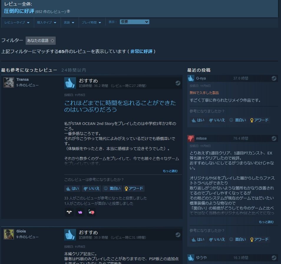 【朗報】Steam版『スターオーシャン2リメイク』圧倒的好評 2023/11/7 Y速報 " " 1: 2023/11/06(月) 13:29:34.17 ID:Fxllrik60 もうPCで遊ぶのが正解 続きを読む Source: Y速報