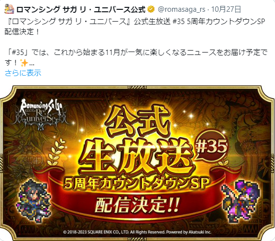 【ロマサガRS】運営「これから始まる11月が一気に楽しくなるニュースをお届けします」って結局何だったの? 2023/11/13 ロマサガRS攻略まとめ " " 958 名前ボストン速報:2023/11/09(木) 13:33:43.07 ID:R2aこれから始まる11月が一気に楽しくなるニュースをお届けします←コレ何だったの? 続きを読む Source: ロマサガRS攻略まとめ