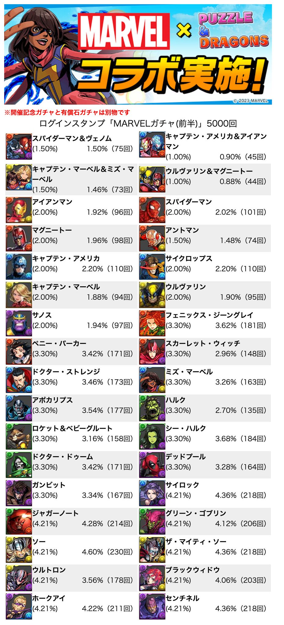 ログインスタンプ「MARVELガチャ(前半)」5000回