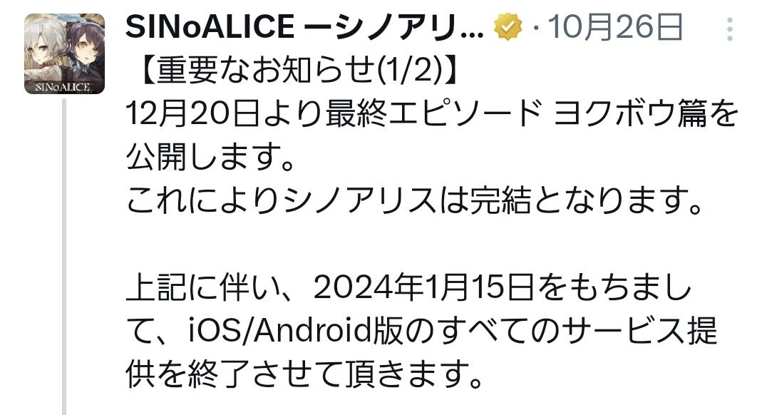 スクエニさん、たった2ヶ月で3つもサ終してしまう・・・ 2023/11/30 Y速報 " " 1: 2023/11/29(水) 13:46:45.87 ID:yjoztFG90NIKU DQMSL シノリアス オペラオムニア 続きを読む Source: Y速報